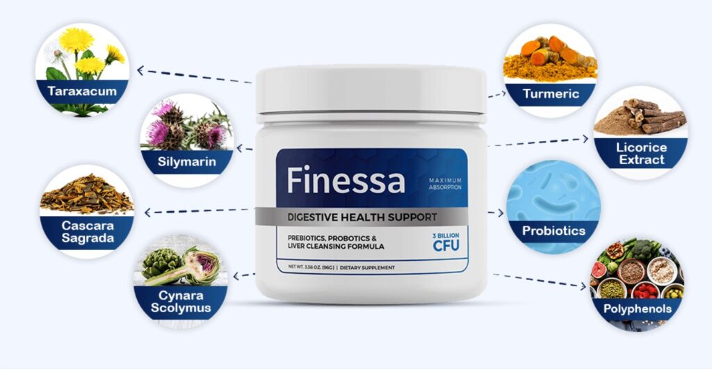 The natural blend of ingredients in Finessa supports digestive health and intestinal balance. Herbal extracts like Taraxacum, Cynara Scolymus, and Cascara Sagrada aid digestion and detoxification, while probiotics help maintain a healthy gut microbiota, reducing bloating and promoting regular bowel movements.